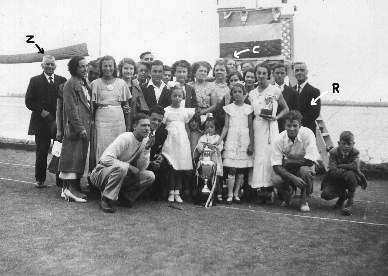 Championnat au Tennis Bellerive 1936 (personnes identifiées:Roger Brière (R), Zéphirin Garceau(Z), Claire Brière (C)