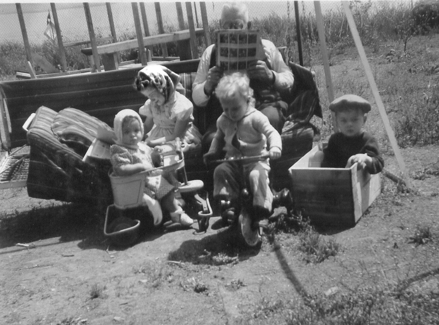 Enfants et adulte sur l'ancien terrain de tennis Bellerive