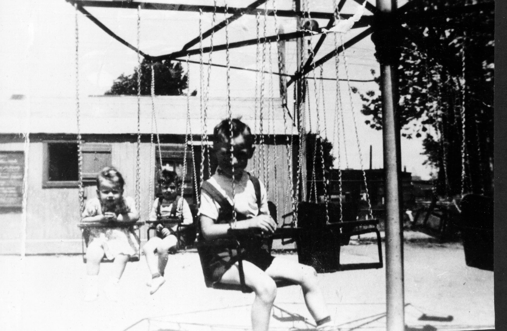 Enfants dans un manège de balançoires.