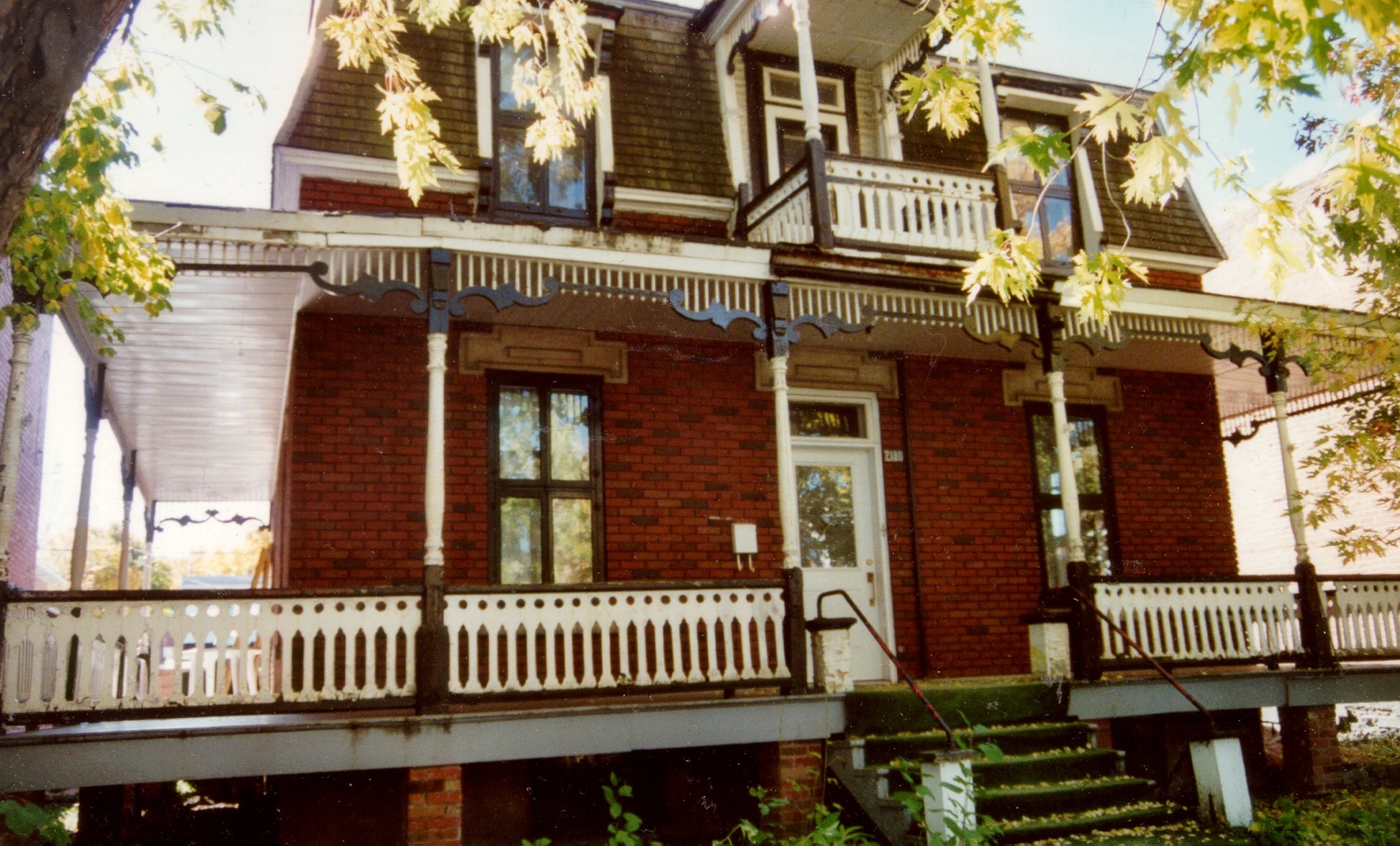 Belle maison à toit mansarde avec galeries tout autour et balcon.