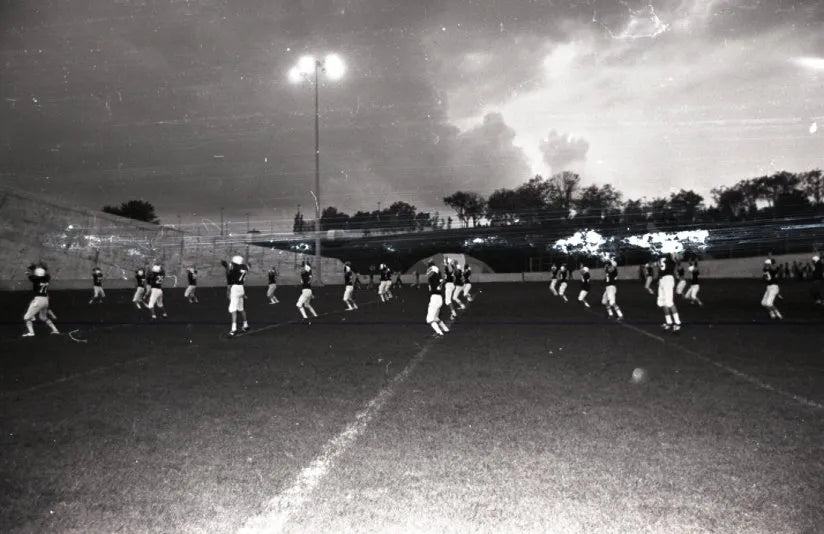 Pratique de football au pied du stade olympique 1977-1978