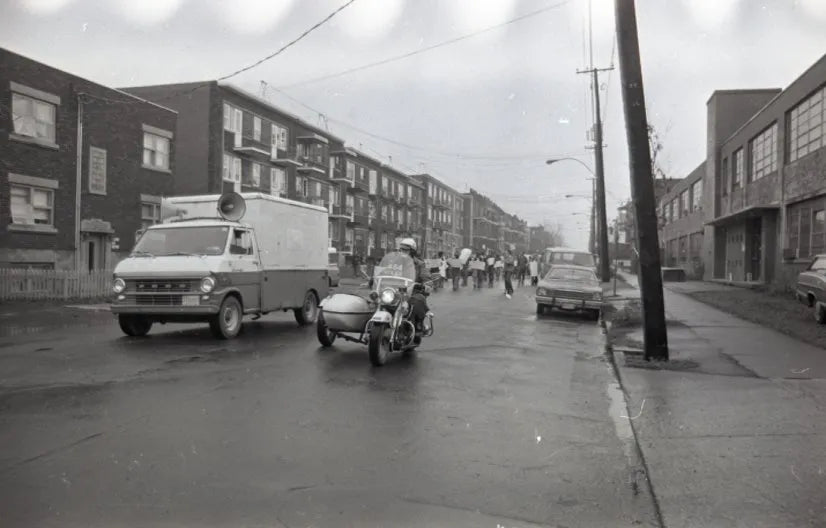 manifestations par des enfants rue Préfontaine au sud de Rouen contre la fermeture de l'arèna Préfontaine (Francis Bouillon) 1977-1978