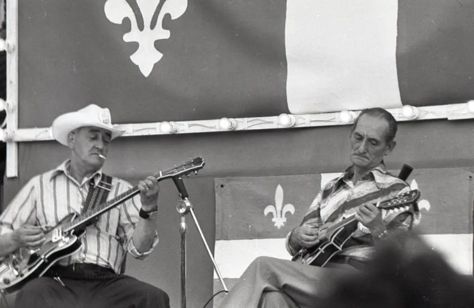 Musiciens sur la scène lors de la fête de la St-Jean sur la rue Gilford au coin de Fabre - 1980