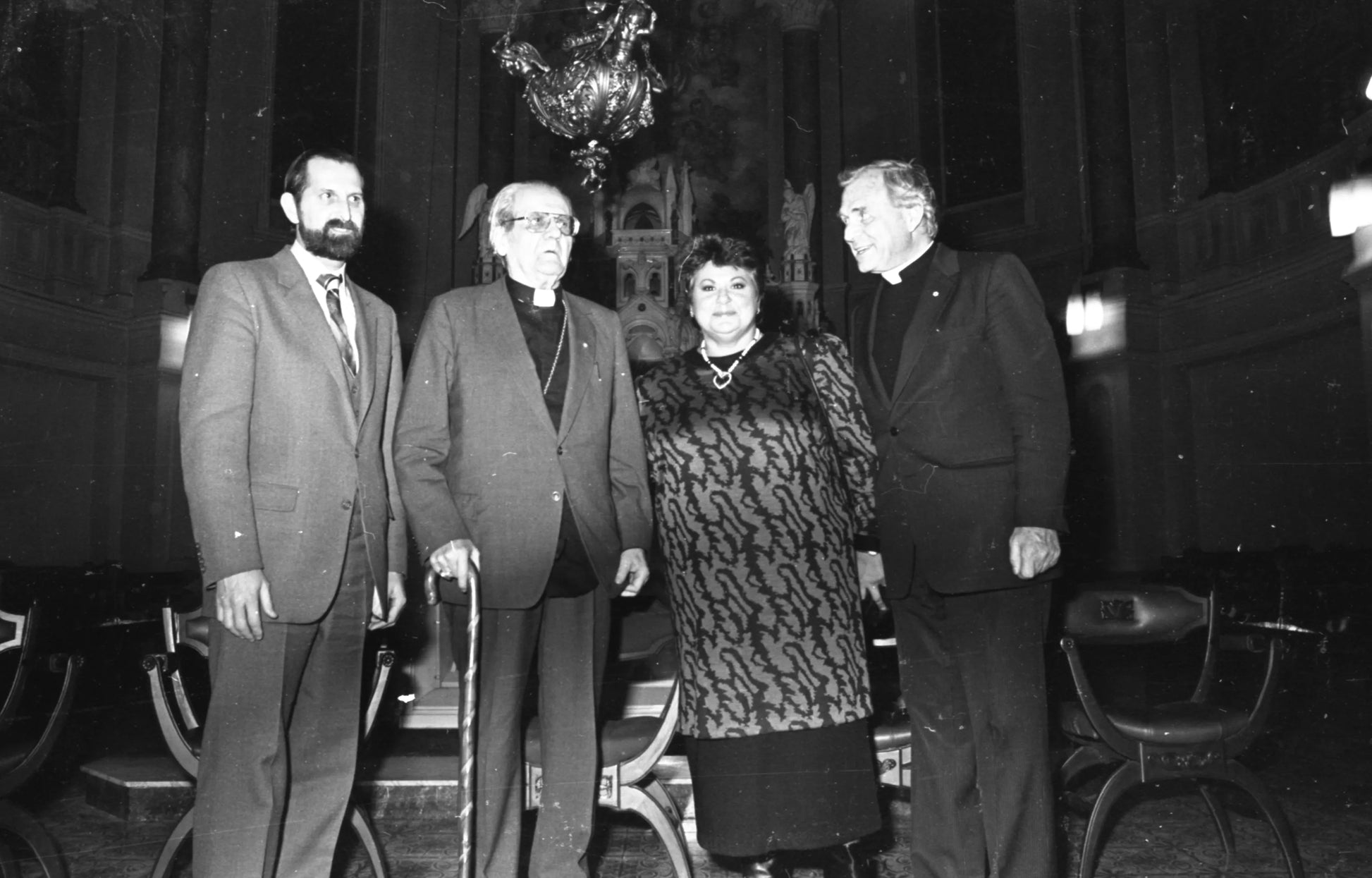 Soirée bénéfice pour la crèche de Noel de Salvatore Sama à l'église Immaculée-Conception. De gauche à droite, Salvatore Sama, Cardinal Paul-Émile Léger, Ginette Reno et le Père Marcel de la Sablonnière.