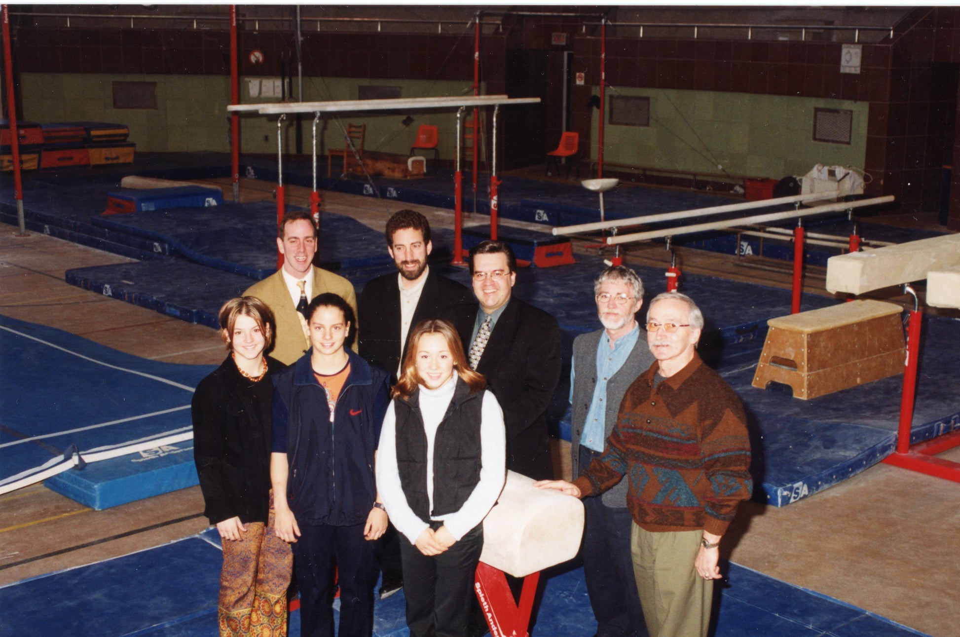 (De gauche à droite) Réal Ménard, Michel Allen, Denis Coderre Jean-Luc D'Etcheverry, André Desjean et les gymnastes Émilie Fournier, Amélie Plante et Julie BeaulieuCote