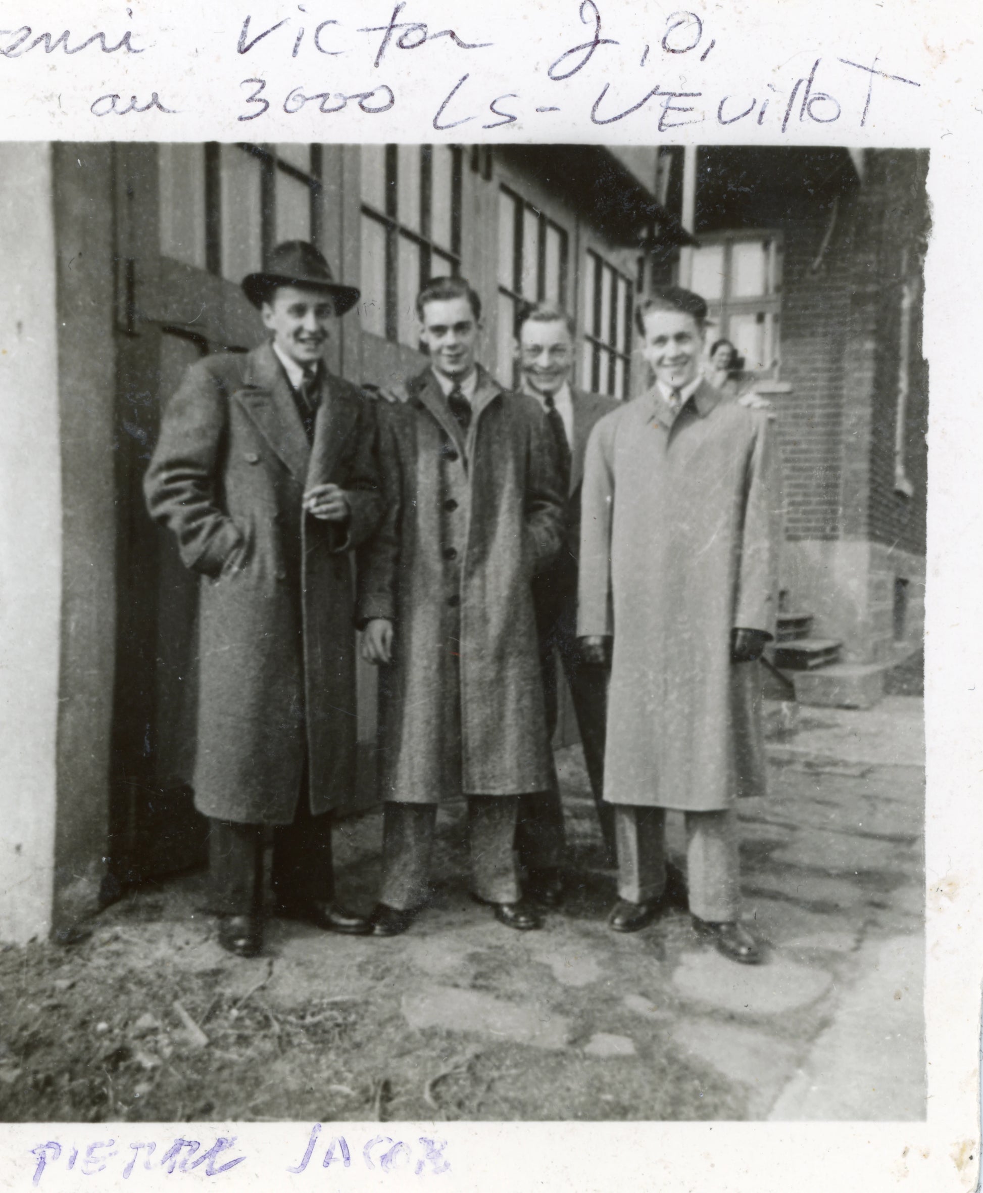 De gauche à droite Pierre Jacob, Victor Lévesque, Octave Lévesque, Henri Lévesque en 1941, derrière le 3000 Louis-Veuillot.